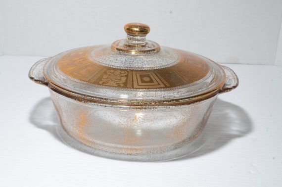 Fire King Culver 22k Gold Ofen Glas Auflaufform 1960er Jahre Deckel 2 Qt Auflaufform Vintage Bedeckt Auflaufform 2 Quart Gold Gesprenkelt