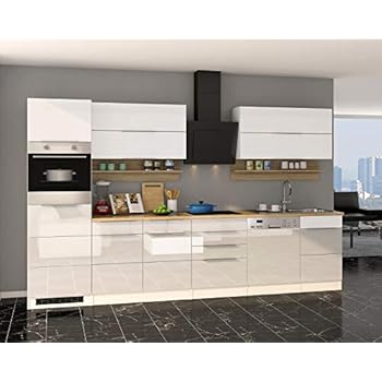Kuchenzeile Hochglanz Grau Einbaukuche Mit Elektrogeraten Geschirrspuler 330 Cm Ebay
