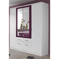 Kleiderschrank Schrank 4 Turig Mit Spiegel Weiss Lila Neu