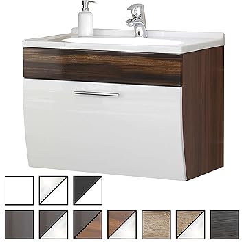 Waschtisch Set Wendum Walnuss Weiss Waschbecken Mit Waschbeckenunterschrank Breite 70 Cm Fur Gaste Wc Form Recht Eckig Hangend Unten Abgerundet