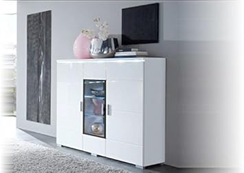 Highboard Island Weiss Hochglanz Glas Holz Metall Amazon