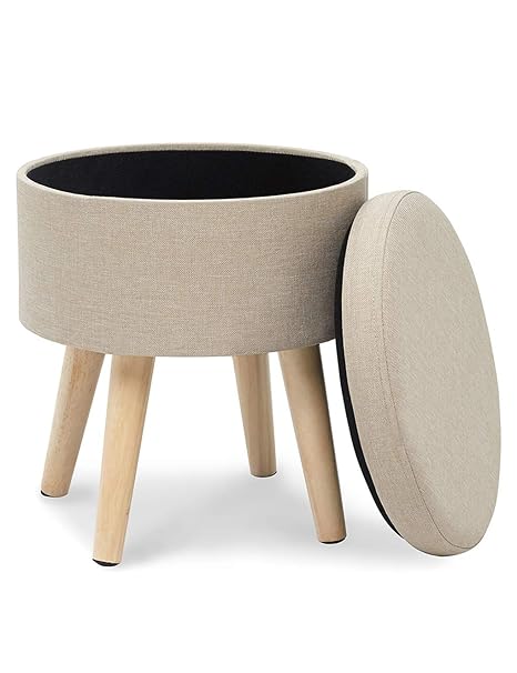 Suhu Pouf Hocker Stuhl Fusshocker Gepolstert Fussbank Rund Schemel Ottomane Polsterhocker Beinablage Sitzhocker Aus Leinen Und Massivholz Mit Stauraum