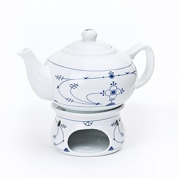 Ocean Line Set Teekanne Mit Stovchen 0 75l Porzellan Indisch Blau Strohblume