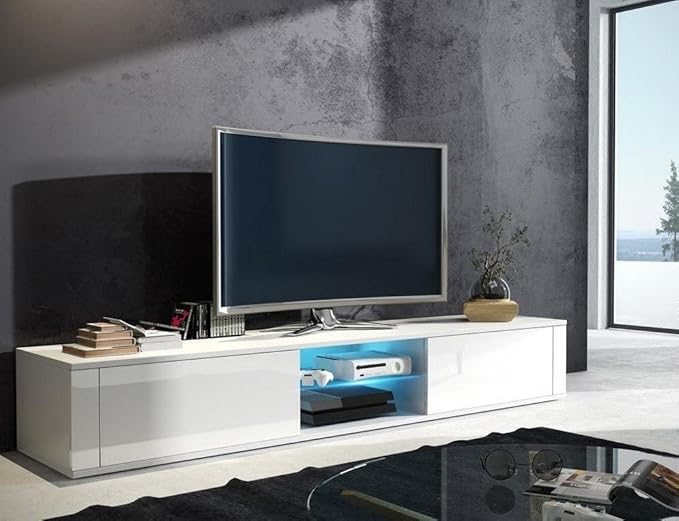 Turen in weiss hochwertige materialien 226 x 41 x 47 cm komplett anpassbar. Lowboard weiss designer tv board.