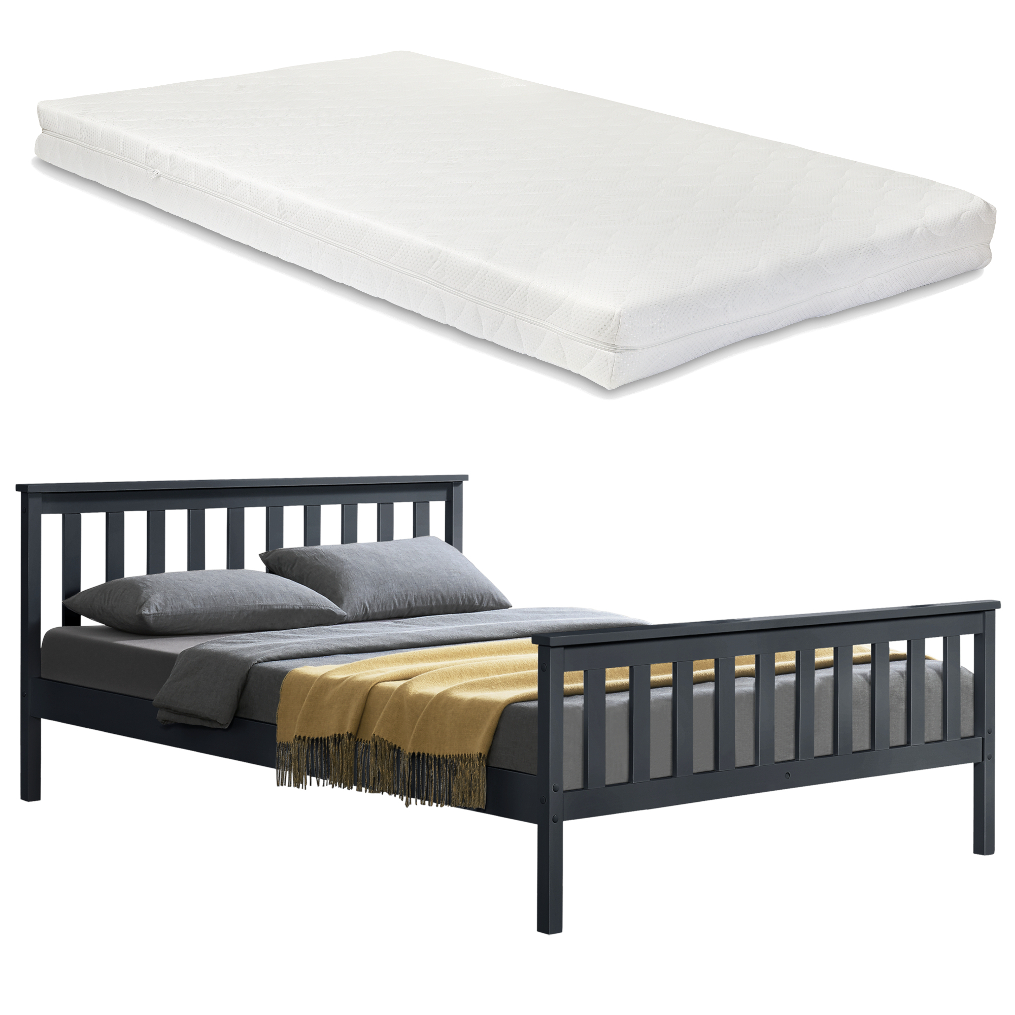 Details Zu En Casa Holzbett 140x200cm Mit Matratze Bett Doppelbett Kiefer Jugendbett Grau