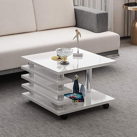 Couchtisch Melanie Weiss Hochglanz Mit Rollen 65 X 65 Cm Tisch Wohnzimmertisch Sofatisch