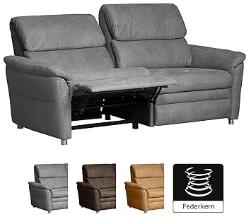 Cavadore 3 Sitzer Sofa Chalsay Inkl Relaxfunktion Mit Federkern Moderne Couch Grosse 179 X 94 X 92 Cm Bxhxt Farbe Grau Argent