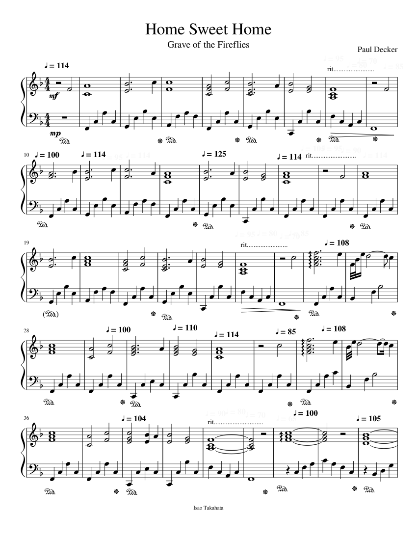 Grave Of The Fireflies Home Sweet Home Sheet Music For