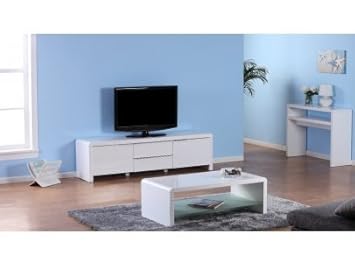 Tv Lowboard Design Holz Hochglanz Amera Weiss Amazon De