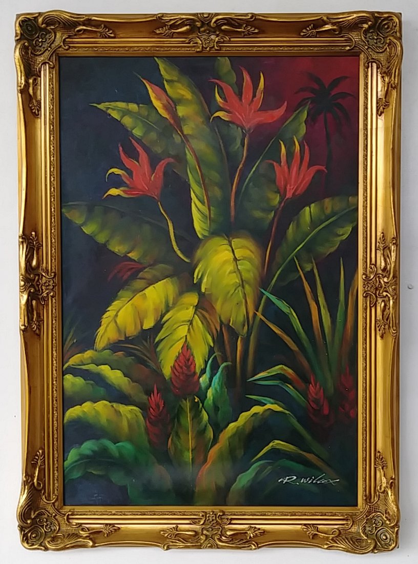 Large Framed Hawaiian Bird Of Paradise Oil Painting Sig