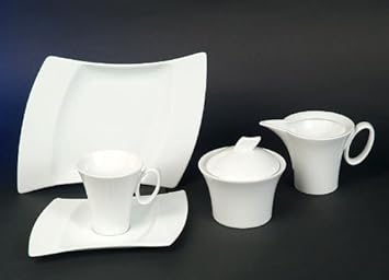 Wing Flugel Weiss Kombi Service 65 Teilig Neu Eckig Porzellan Geschirr Set 12 Personen