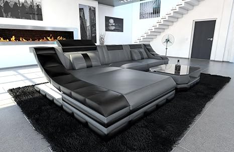 Sofa Dreams Ledersofa Turino L Form Grau Schwarz Amazon De