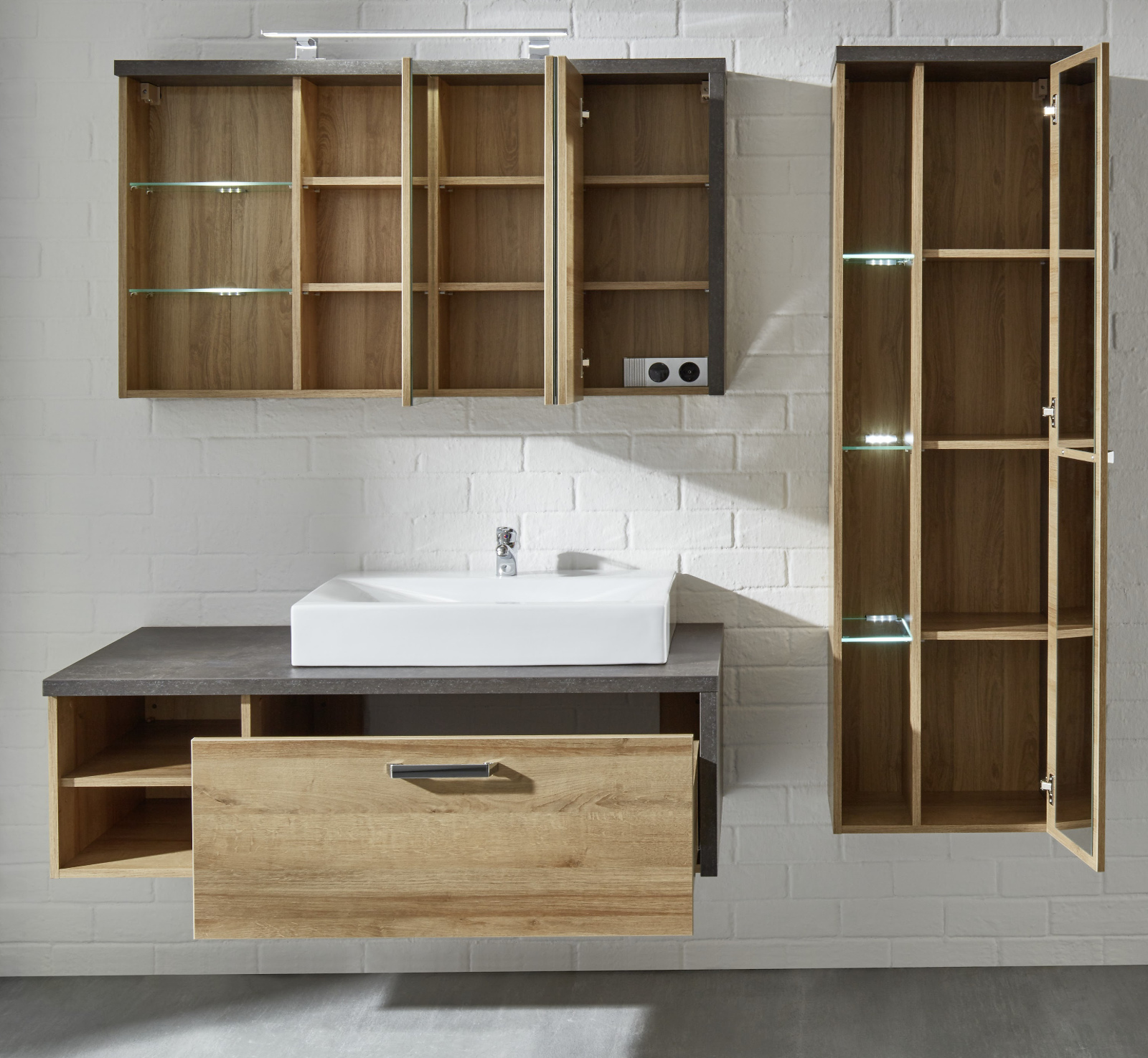 Badmobel Set Bay Eiche Riviera Beton Grau