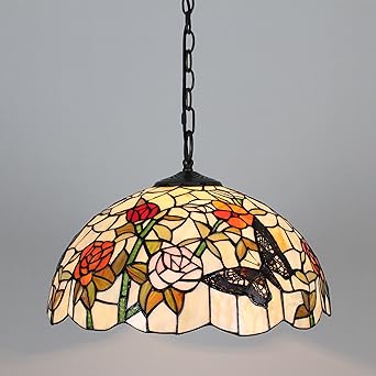 16 Zoll Antiker Weinlese Schaferhund Blumen Buntglas Decken Lampen