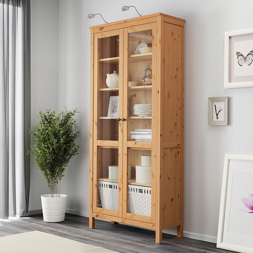 Hemnes Glass Door Cabinet Light Brown Ikea