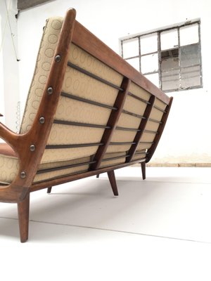 Carved Walnut Stained Birch Three Seat Sofa From De Ster
