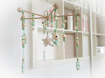 Baby Holz Mobile Fur Babybett Kinderbett Babywiege Natur Mint