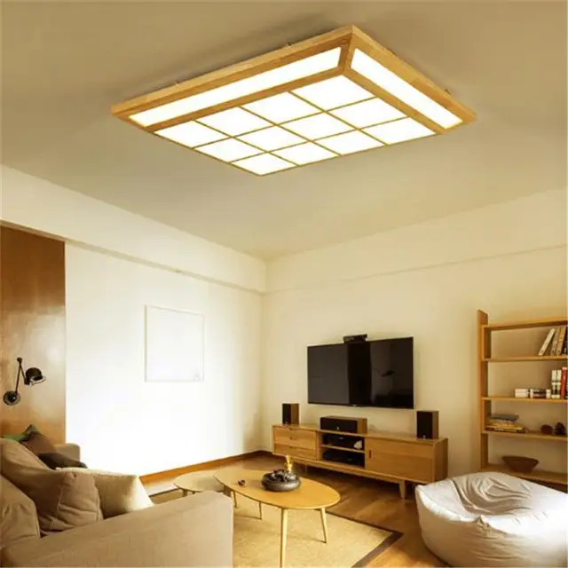 Nordic Led Holz Cube Wohnzimmer Decke Lampe Quadratischen Gitter