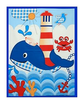 Stoff Maritime Bilder Meer Panel Fische Krabben Patchworkstoffe