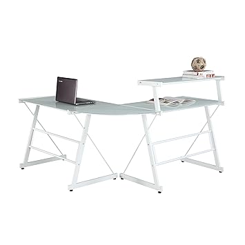 Milan Jada Glas Weiss L Form Schreibtisch Mit Obere Ablage Amazon