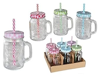 Trinkglas Henkel Deckel Trinkhalm Trinkbecher Country Vintage Glas