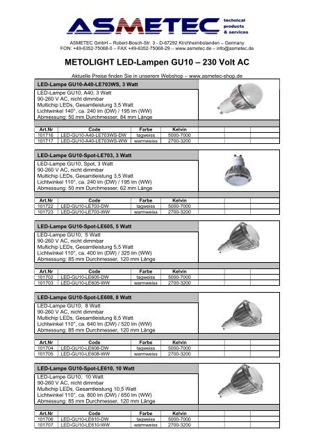 Metolight Led Lampen Gu10 230 V Ac Asmetec Shop