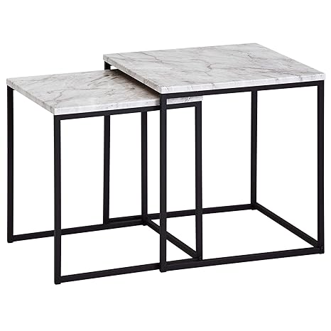 Finebuy Design Beistelltisch 2er Set Marmor Optik Weiss