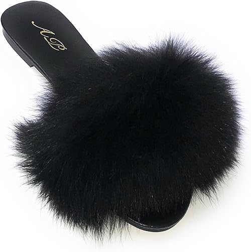 Hausschuhe F Schwarz Damen Schlappen Mit Fell Slider Pelz Plusch