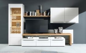 Design Wohnwand Dubai 5 Teilig Hochglanz Weiss Eiche Massiv