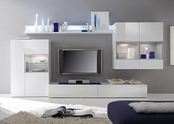 Alegre Wohnwand Weiss Hochglanz Glas Holz Amazon De Kuche Haushalt
