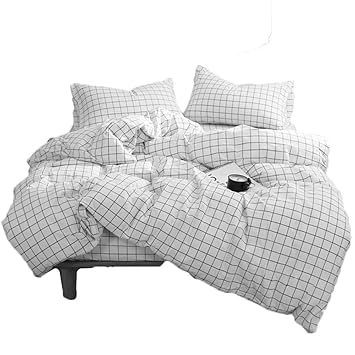 Boqingzhu 3 Tlg Bettwasche 200 X 200cm Kariert Schwarz Weiss