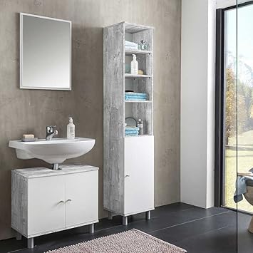 Pharao24 Badmobel Set In Grau Beton Optik Weiss Amazon De Kuche