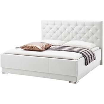 180x200 Cm Boxspring Bett Fulia In Weiss Kunstleder Mit Bettkasten