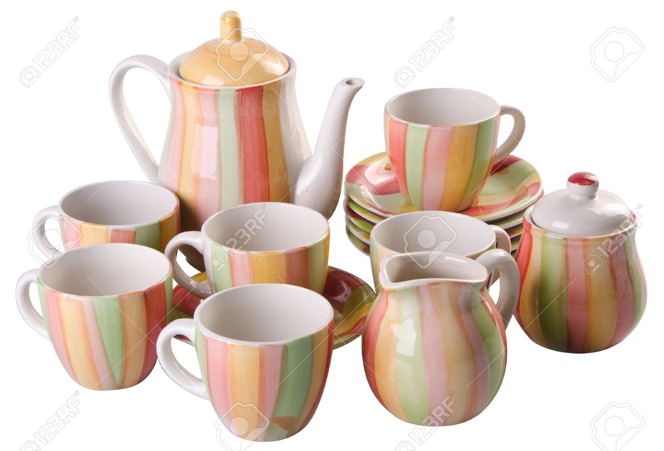 Teekanne Set Porzellan Teekanne Und Tasse Auf Weissem Hintergrund
