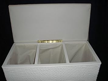 Waschekorb 3 Fach Sortierer Sitzhocker Aus Rattan Weiss Mit Drei