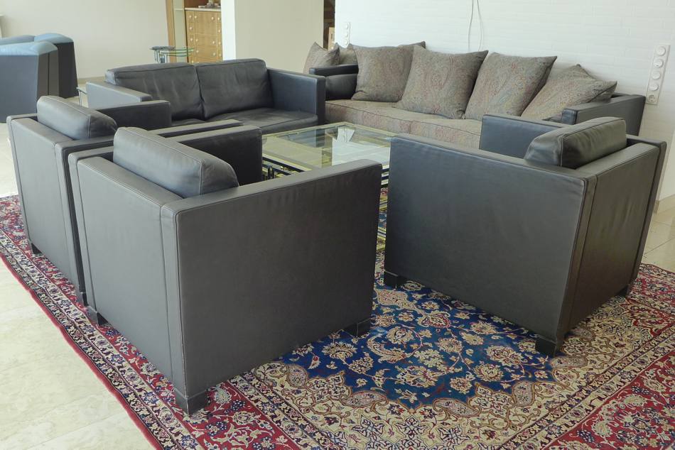 De Sede Sofagruppe 3 2 1 1 1 Sofa Schwarzes Leder Und Stoffbezug