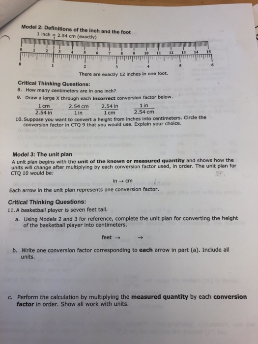 Solved Model 2 Definitions Of The Inch And The Foot 2 54