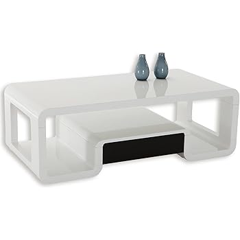 Roller Couchtisch Nico Weiss Hochglanz Mit Schubkasten