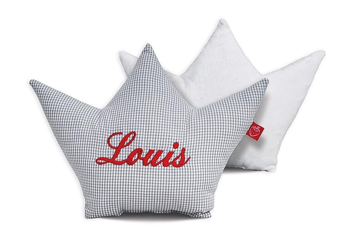 Kissen Kinder Krone Prinz Vichy Karo Grau Mit Namen
