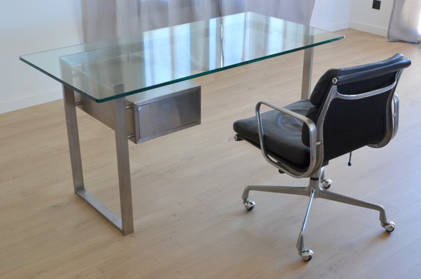 Franzosischer Vintage Schreibtisch Mit Glasplatte Von Paul Legeard