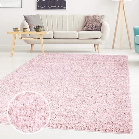 Ayshaggy Shaggy Teppich Hochflor Langflor Einfarbig Uni Rosa Weich