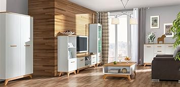 Wohnzimmer Komplett Set A Bambey 6 Teilig Farbe Eiche Weiss