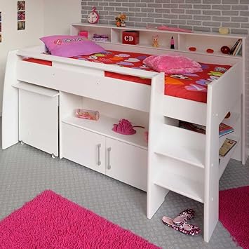 Pharao24 Halbhohes Kinderbett Sinop In Weiss Mit Schreibtisch Und