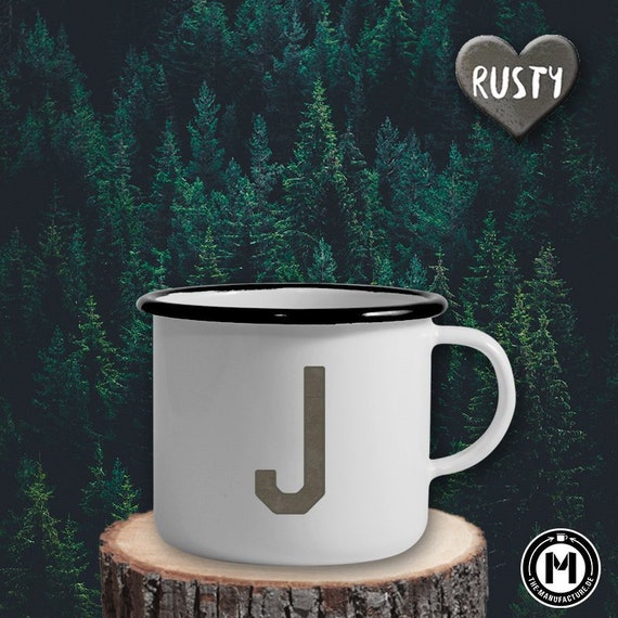 J Buchstabe Initiale Name Outdoor Emaille Becher Tasse Etsy