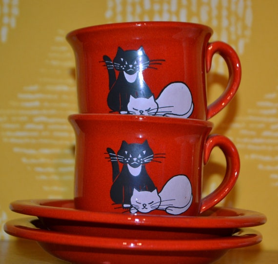 Vintage Geschirr Set Von Schramberg Cats 70er Jahre Rot Etsy