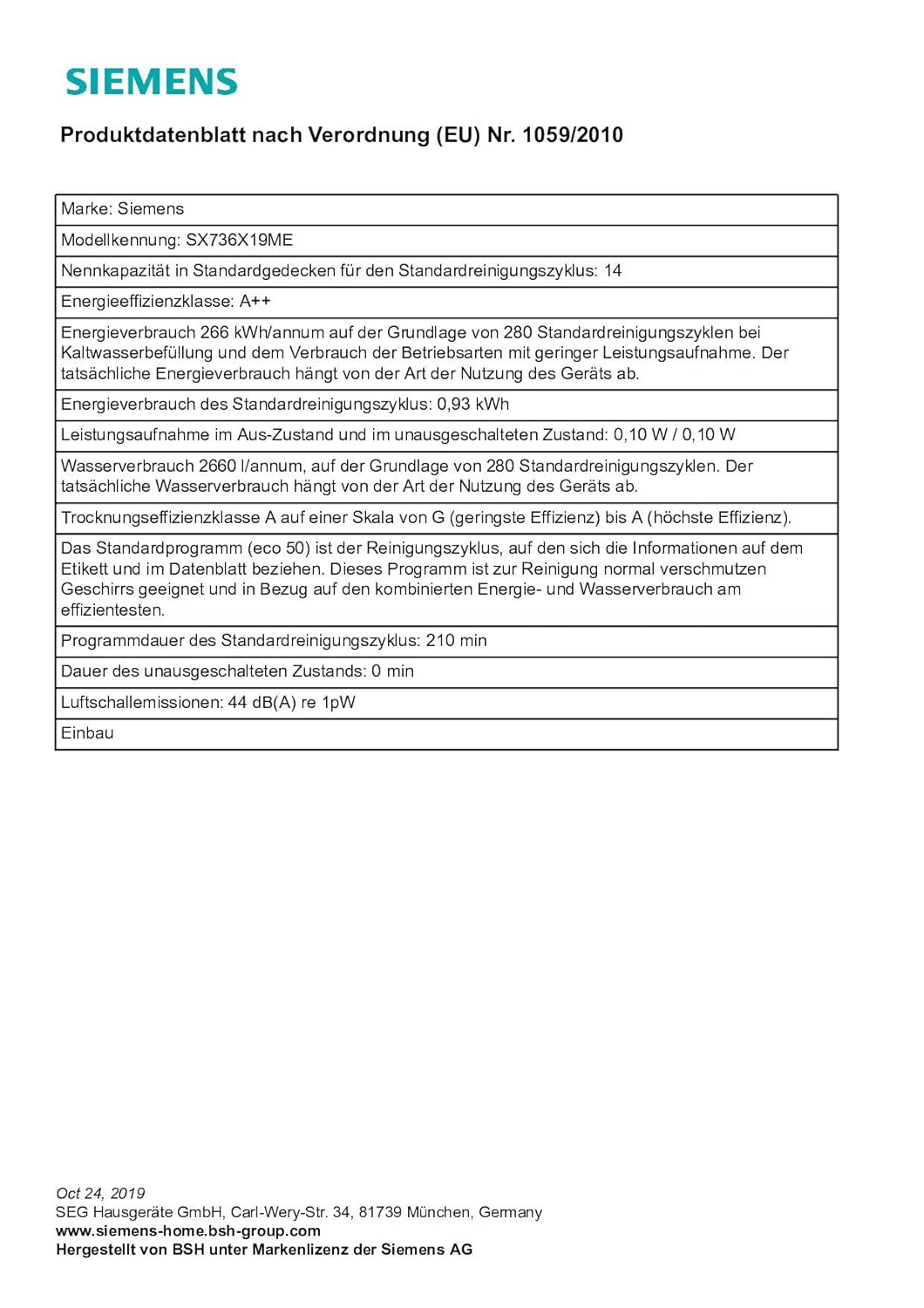 Siemens Sx736x19me Geschirrspuler 60 Cm Hoch 14 Massgedecke A