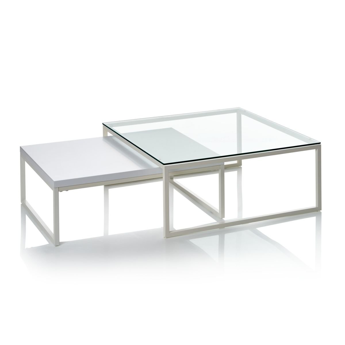 Pureday 2 Teiliges Couchtisch Set Metall Glas Mdf Weiss Modern