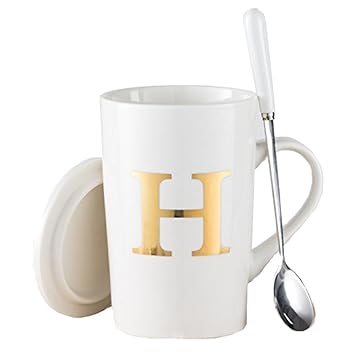 Yomiokla Weisses Gold Buchstaben Des Nachnamens Keramik Becher Mit