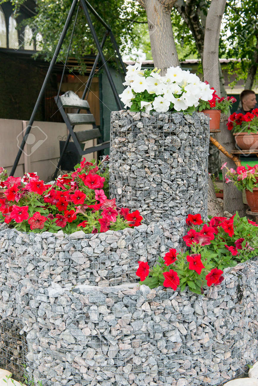 Ein Blumenbett Der Petunie Fur Die Steine Bluhen
