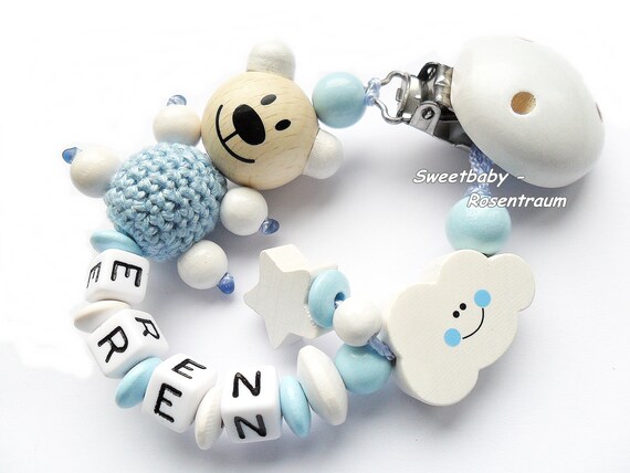 Schnullerkette Mit Namen Junge Wolke Teddy Bar Stern Etsy